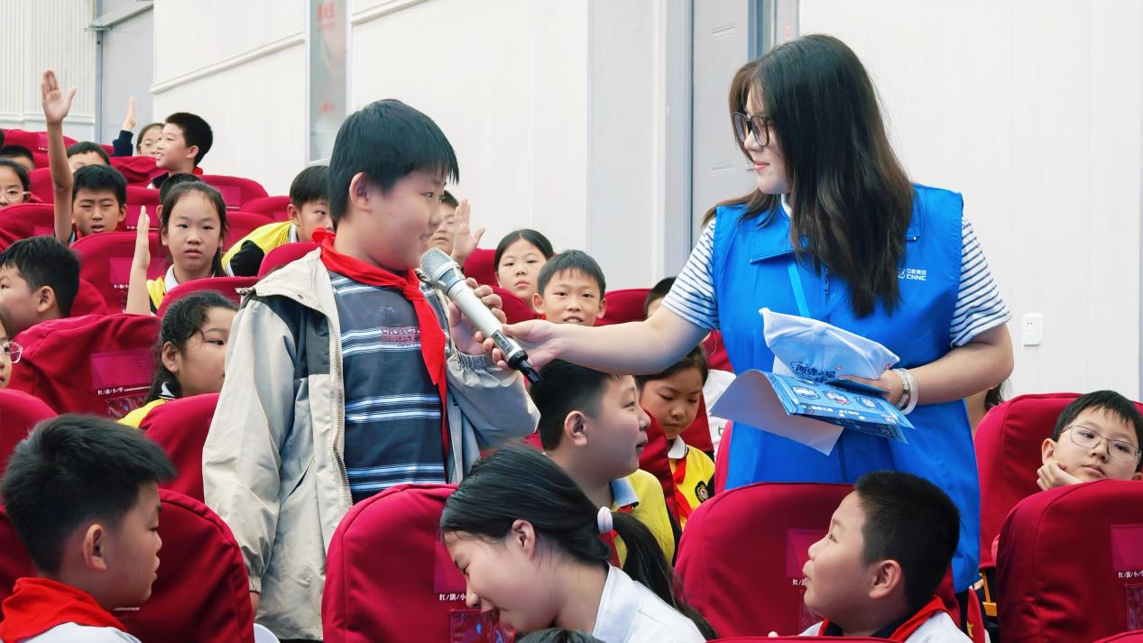 随后的科普课堂环节精彩纷呈,互动热潮席卷全场。“核梦传递者”击鼓传帽问答游戏中,主题帽随欢快节奏流转,孩子们应声作答“两弹一星”历史与核聚变知识,在欢声笑语中巩固认知、点燃兴趣。“聚变判断力”快问快答挑战则以班级为单位进行,同学们或集体起立或静坐示意,用整齐划一的响应展现出扎实的科学素养与默契的团队协作。