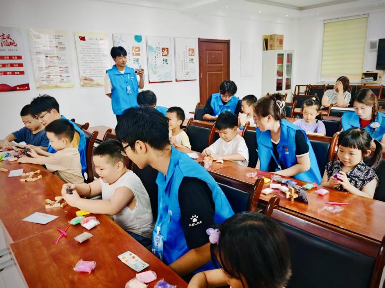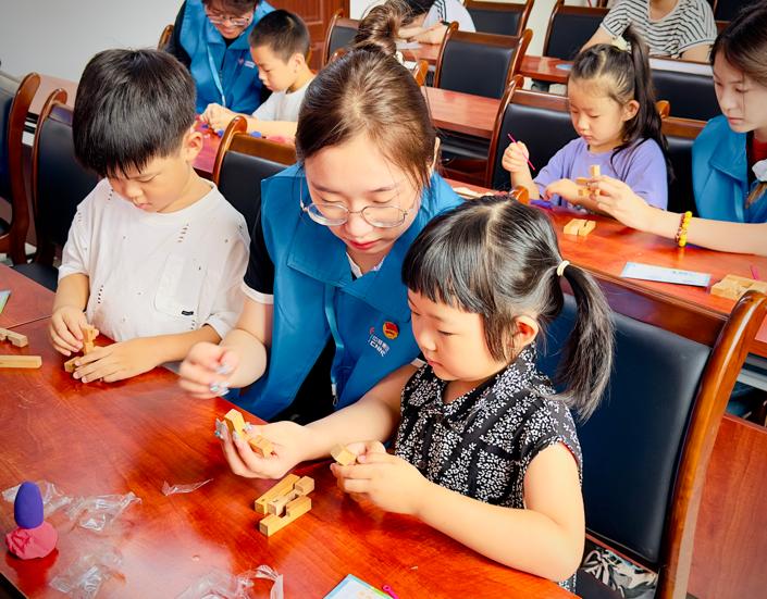 为了让孩子们更直观地感受科学魅力,志愿者精心设计了多项互动环节。宣讲团通过太空泥制作火箭、核潜艇等模型,直观了解装备结构,感悟老一辈科学家自力更生的奋斗精神;以传统榫卯工艺与现代积木技术相结合的方式,合作搭建“华龙一号”核电站核心模型,在模拟科研攻关的过程中,深刻体会到团队协作的力量和科学家们的智慧。这些活动不仅激发了孩子们的创新思维,更在他们心中播下了爱国与科学的种子。