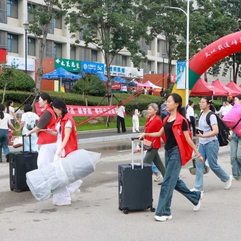 迎新服务期间,各级学生组织和志愿者们身披马甲,穿梭在校园的各个角落,为新生们提供引导、咨询、行李搬运等贴心服务,协助学校各部门开展工作,与安保人员共同维护校园秩序,帮助新生快速完成报到手续,及时解决新生在报到过程中遇到的各种问题。在各服务点,志愿者们还为新生准备了创意抽奖、爱心补给站等特色活动。从校门到报到处,从报到处到宿舍楼,志愿者们用真诚的笑容和耐心地解答,消除了新生们的陌生与不安,让他们初入校园便感受到了家一般的温暖与关怀。