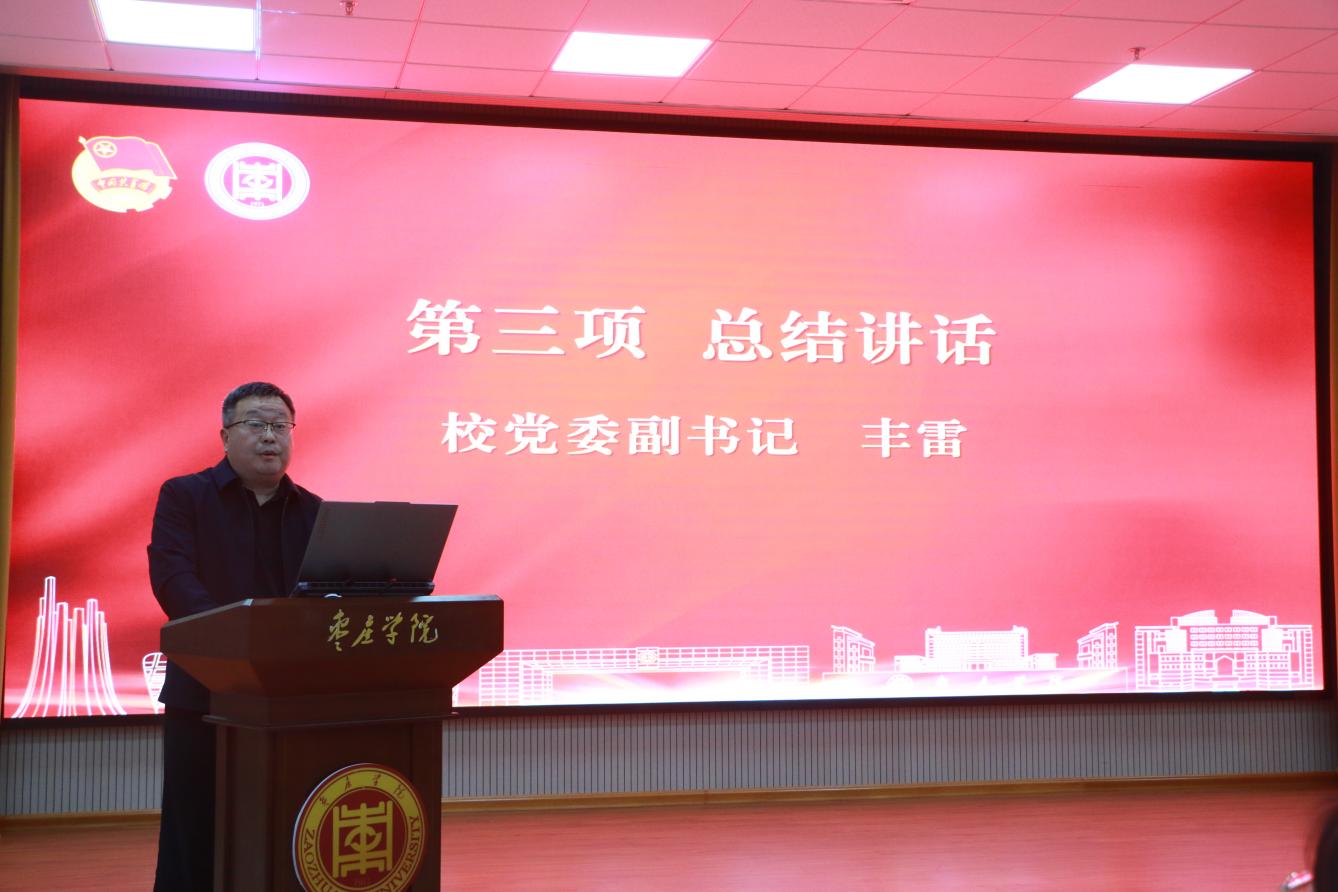 为全面总结2025年度学校共青团工作成效,进一步推动共青团事业高质量发展,1月6日下午,我校在薛城校区明理楼113会议室召开以“牢记嘱托勇担当 青春建功新征程”为主题的2025年度共青团工作总结交流会,校党委副书记丰雷出席会议并讲话。会议由校团委副书记姜周主持。