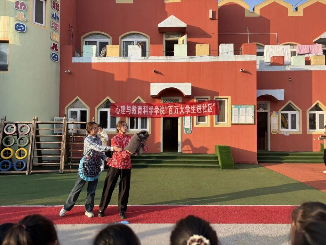 11月19日,心理与教育科学学院(初等教育学院)到君山路小学幼儿园开展“演绎红色经典,点亮童年信仰”百万大学生进社区活动,学院七色花儿童剧团、志愿者20余人参加。
